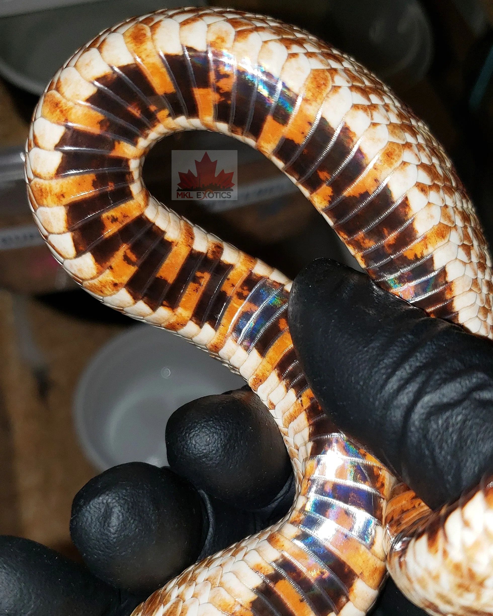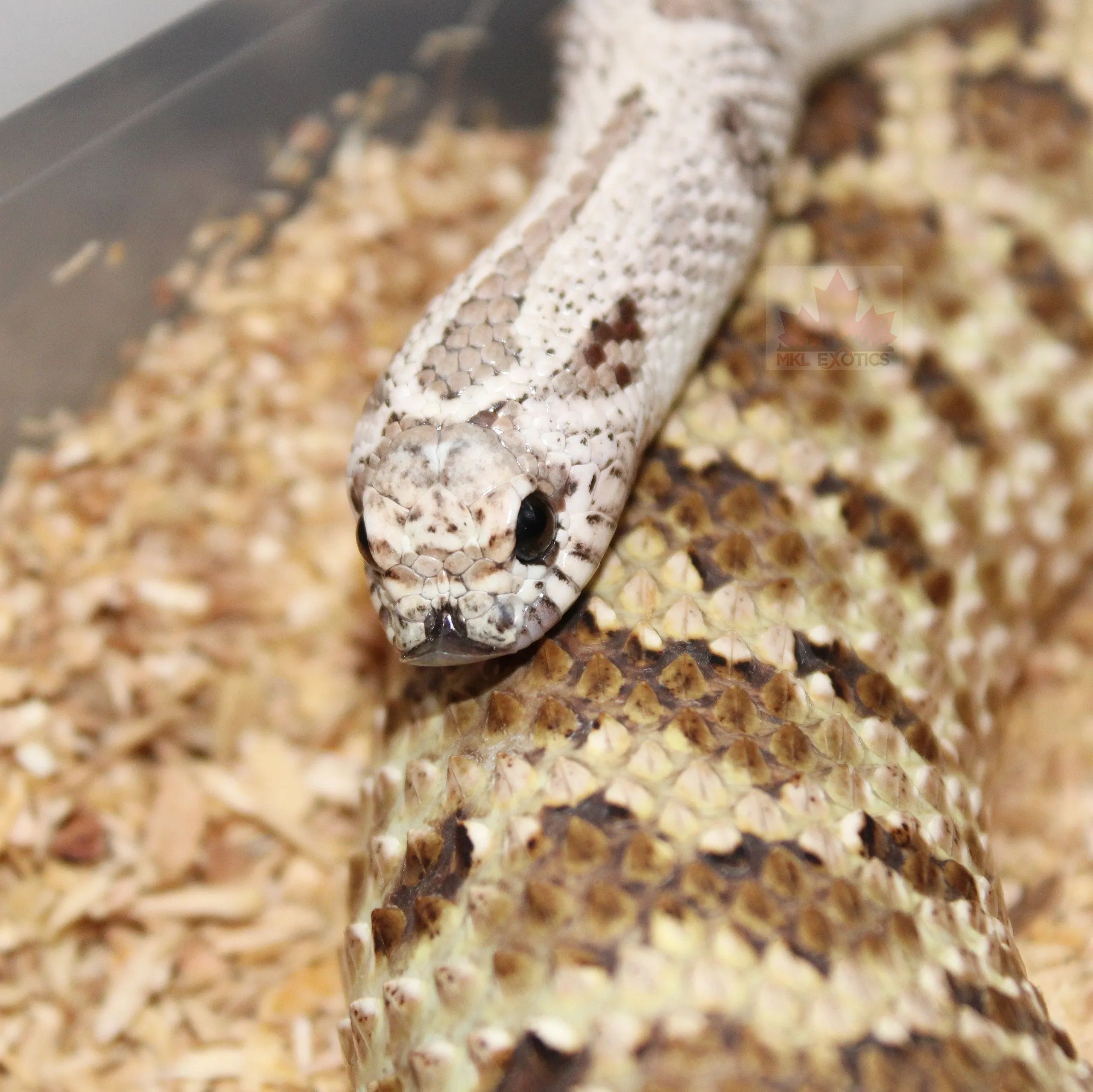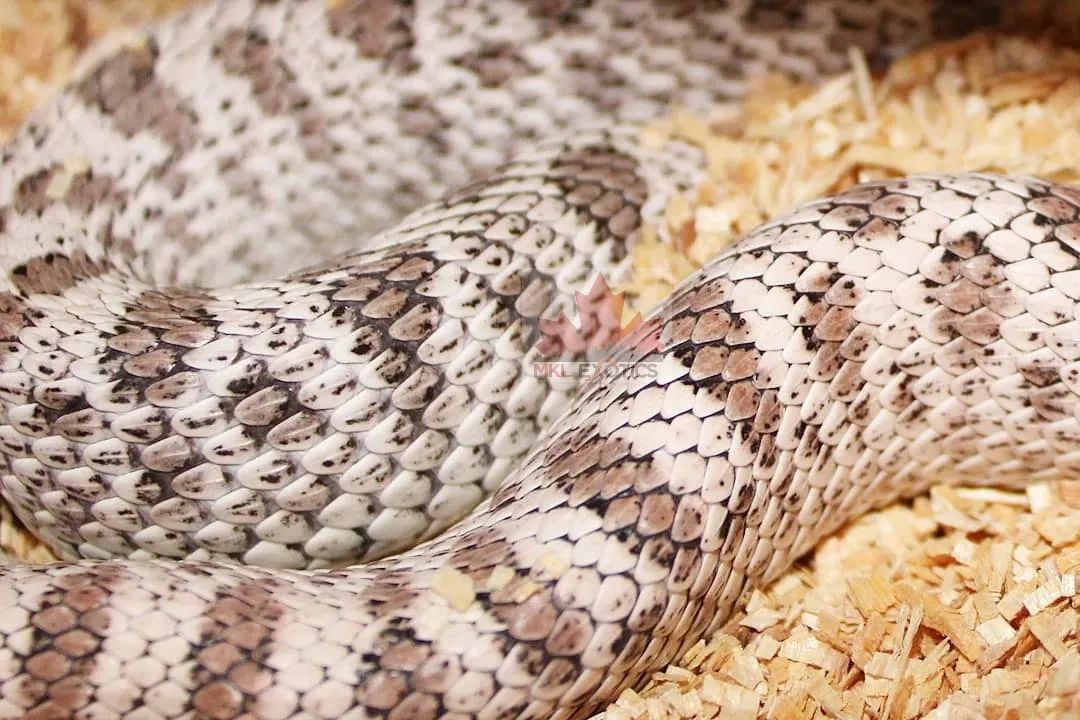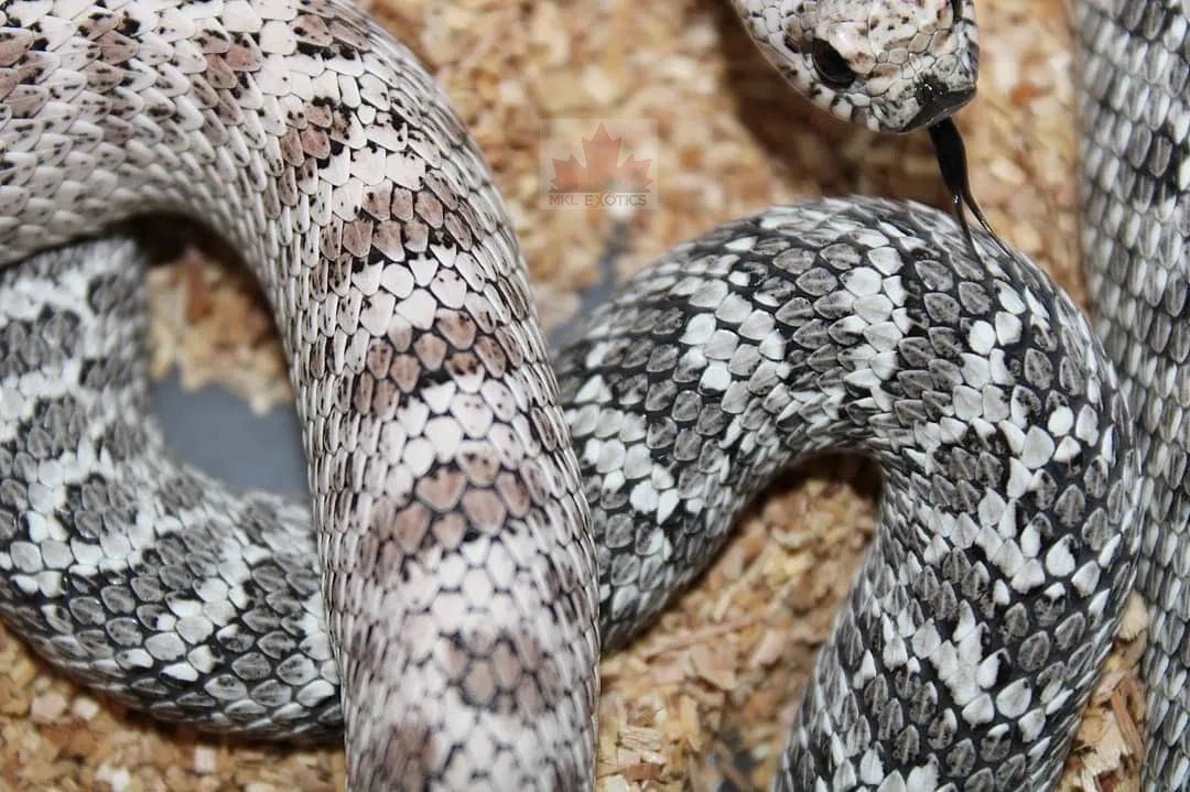 Super Arctics are the complete form of the Arctic trait and present as a high contrast animal that is born extremely dark, almost black. With each shed the animal develops progressively more contrast, eventually resulting in a snake that looks almost black and white.